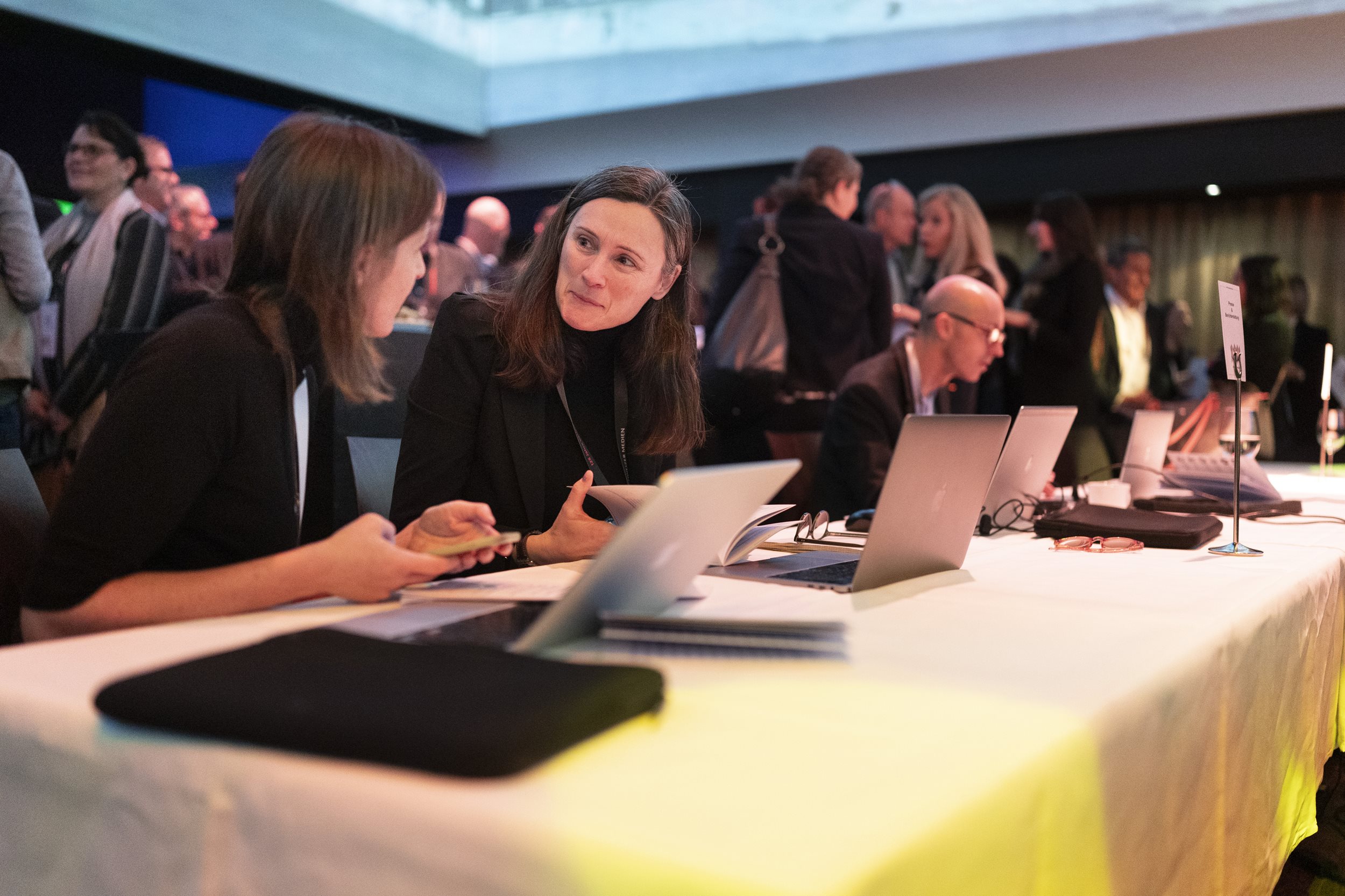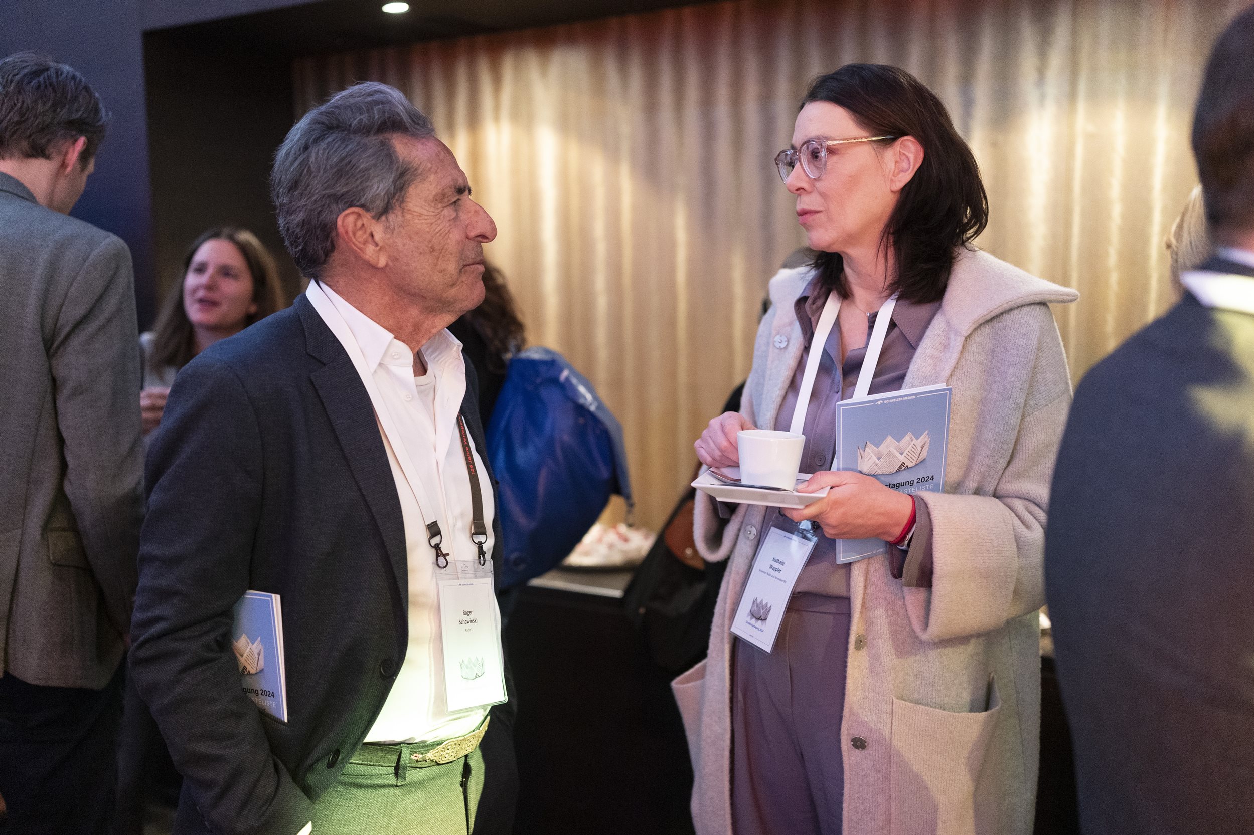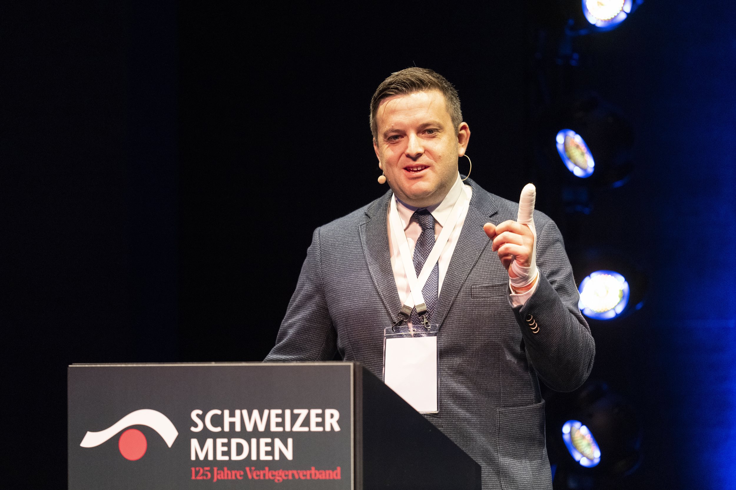 Moderator Oliver Steffen von Tele Züri begleitete zum ersten Mal durch den Anlass und moderierte auch die traditionelle Paneldiskussion nach der Kaffeepause &ndash, in diesem Jahr mit vier CEOs von Schweizer Medienunternehmen. Ladina Heimgartner (Ringier), Thomas Kundert (Somedia), Jessica Peppel-Schulz (Tamedia) und Michael Wanner (CH Media) sind sich einig: Die digitale Transformation erfordert hohe Investitionen, weswegen Sparübungen aktuell kaum zu umgehen sind. Gerade das Aufkommen von KI bringe neben Chancen vor allem auch Gefahren mit sich, «,auch in den Regionen, nicht nur bei den ganz grossen Playern»,, ist sich Kundert sicher.