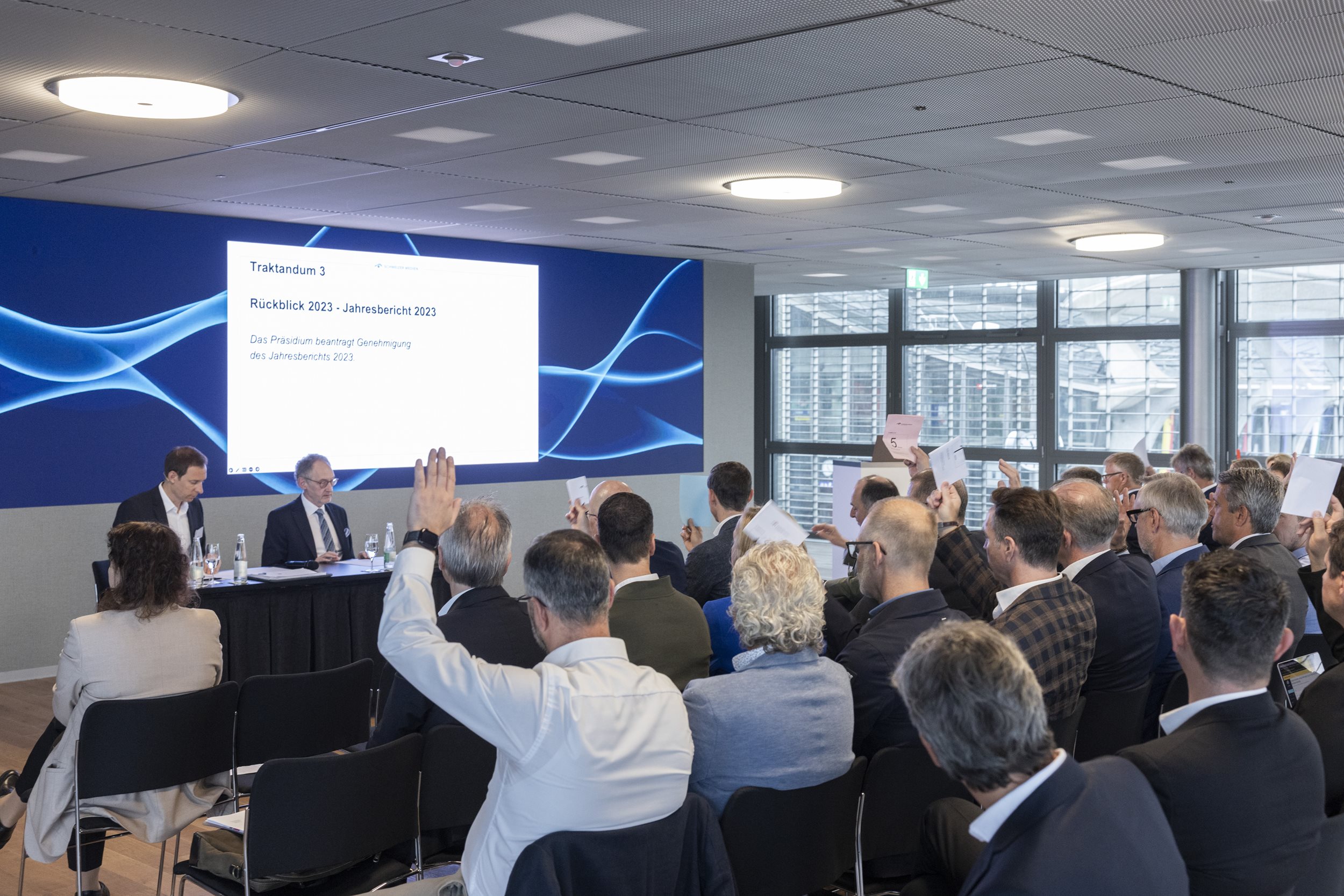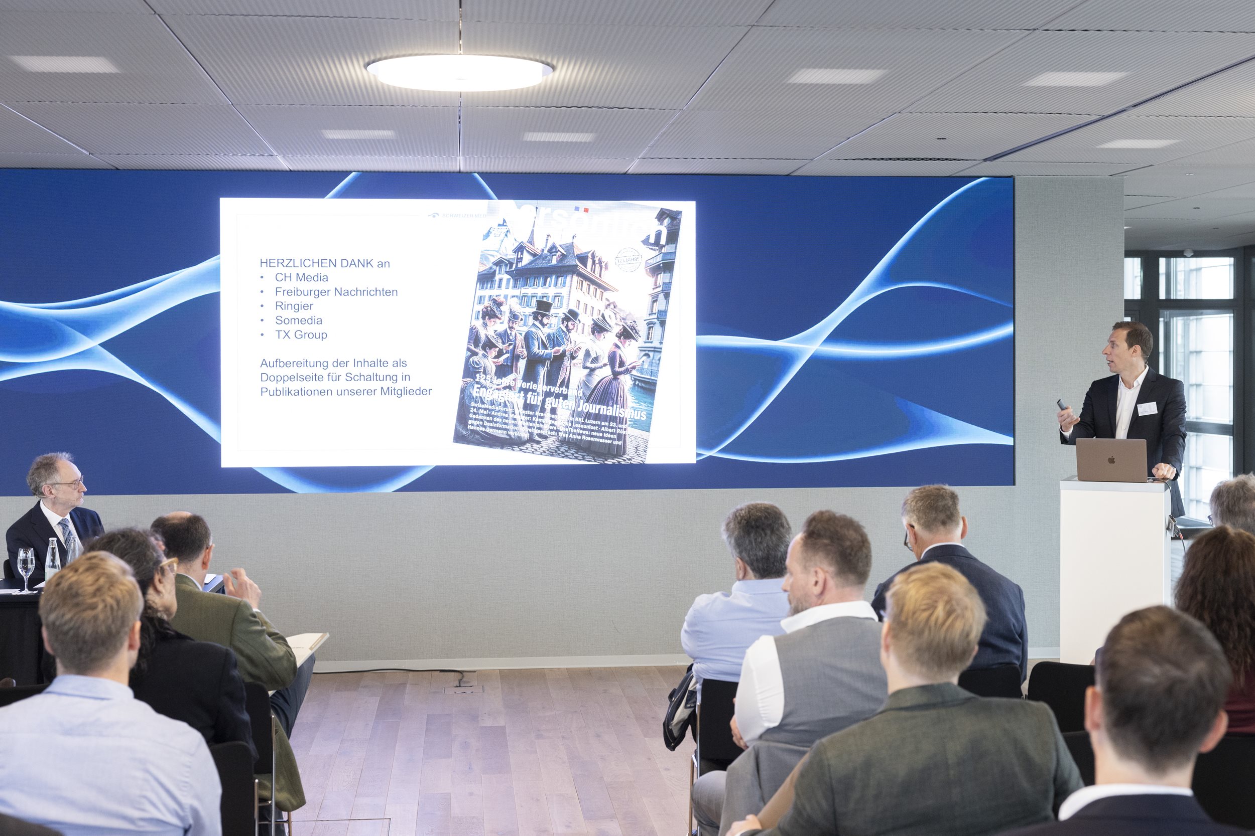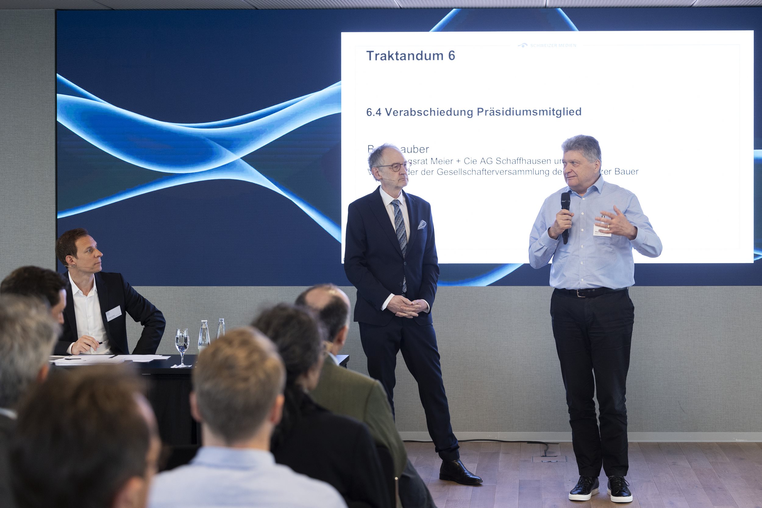 Die Mitgliederversammlung bestätigte zudem Andrea Masüger (Somedia Press AG) als Verlegerpäsidenten sowie die übrigen Präsidiumsmitglieder Peter Wanner (Vizepräsident VSM, CH Media Holding AG), Ladina Heimgartner (Ringier AG), Christof Nietlispach (Freiämter Regionalzeitungen AG), Dr. Ursula Nötzli (TX Group AG) und Christoph Nussbaumer (Freiburger Nachrichten AG) einstimmig für eine weitere Amtsperiode.